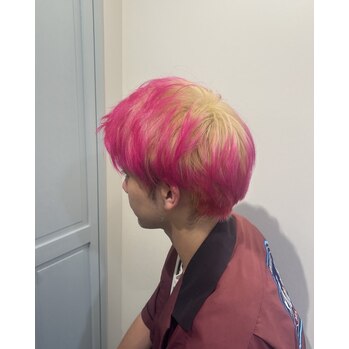 今回は根元のブロンドと毛先のビビッドピンクがインパクト抜群なコントラストカラーに仕上がりました!