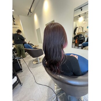 全頭ブリーチではなくイヤリング部分のブリーチをして少し淡いピンクを入れました