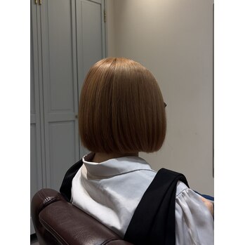 ブリーチ後にベージュカラーを重ねて、柔らかく透明感のある仕上がりにしました。